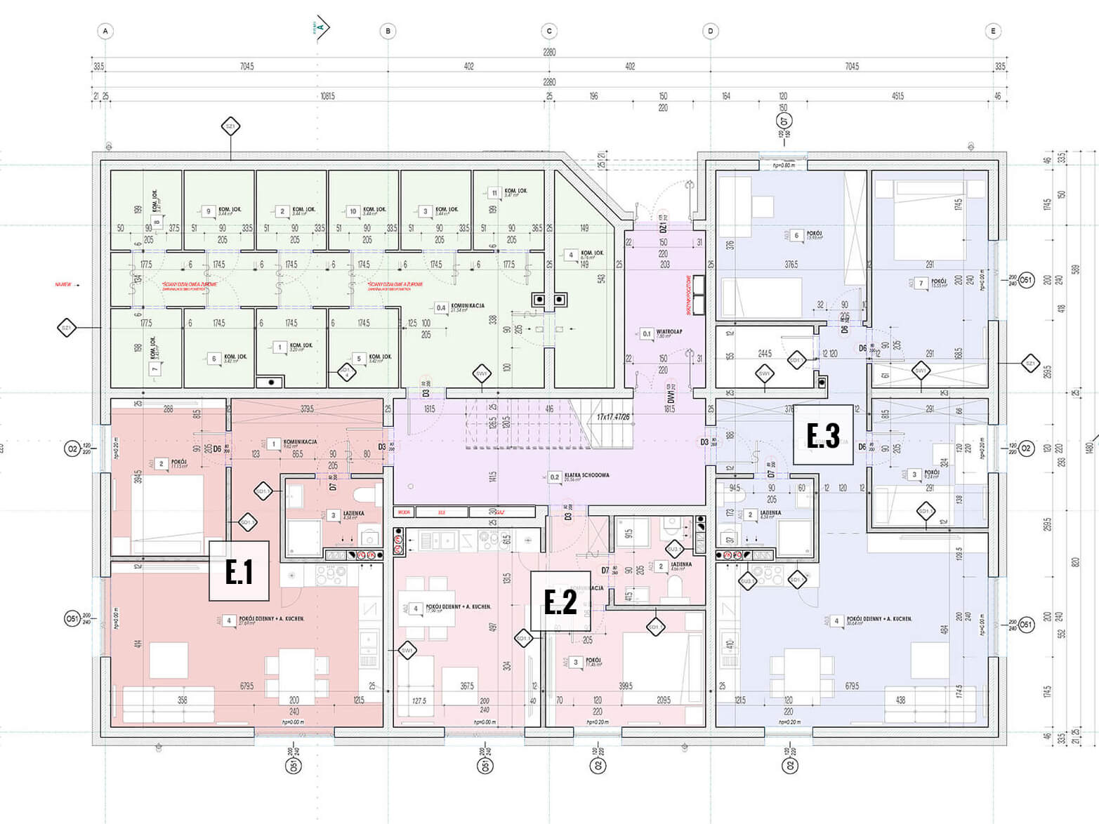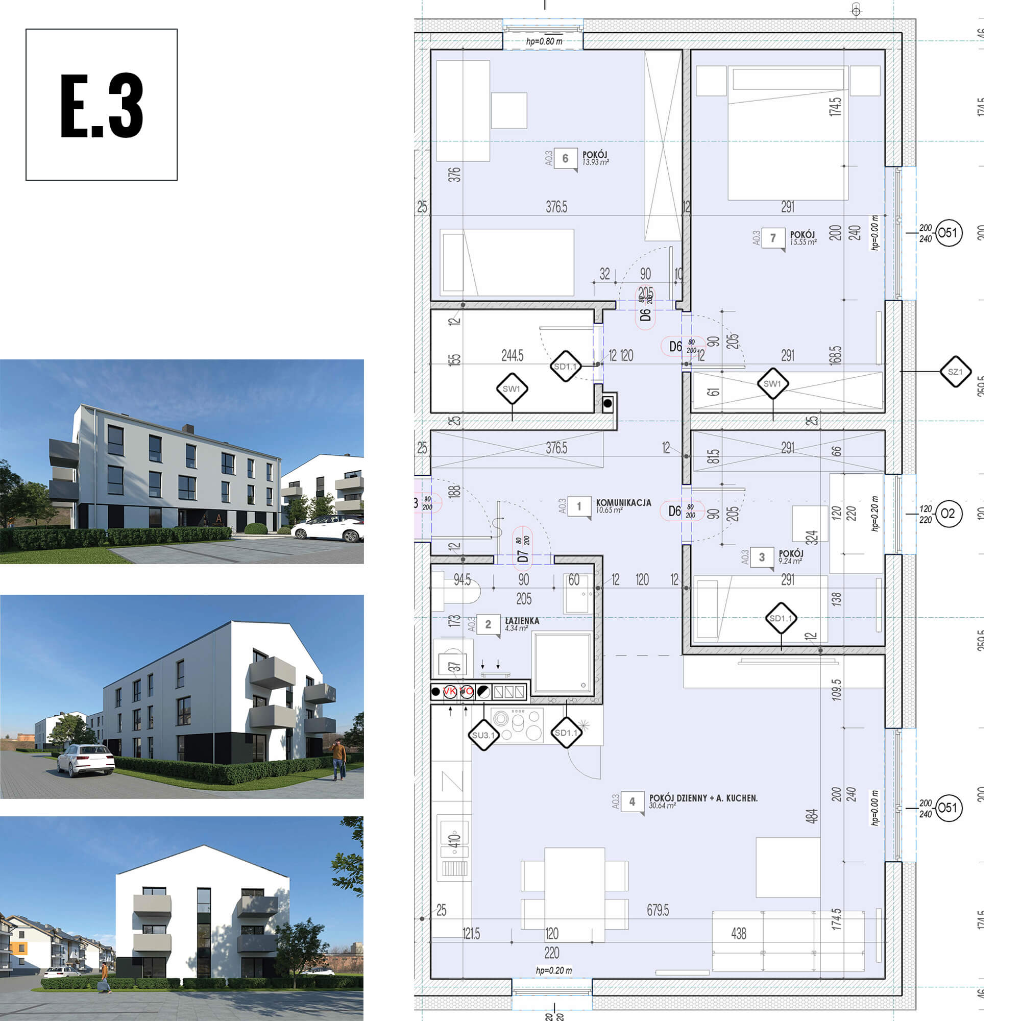 To drugi etap inwestycji. W pierwszym, dostępnym w sprzedaży budynku E znajduje się łącznie 13 lokali o powierzchni od 37 do 84 m2. Mieszkania spełniają zarówno oczekiwania singli, jak i rodzin z dziećmi, ponieważ zostały one starannie zaprojektowane, zgodnie z obecnie panującymi trendami i w funkcjonalny sposób. Niewątpliwym atutem w przypadku mieszkań na parterze są przestonne ogródki. Wszystkie mieszkania mają zapewnione miejsce parkingow.